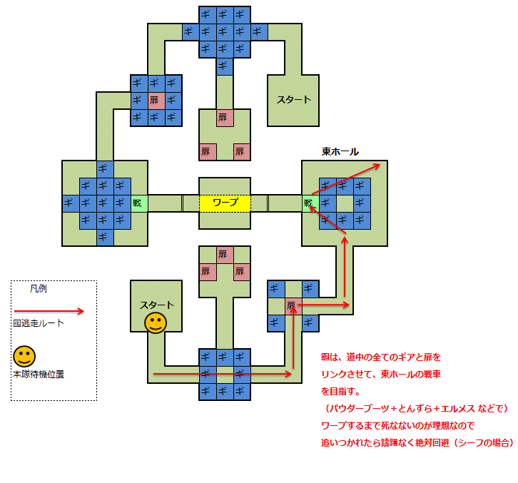 戦車を通路から遠ざけて、ワープ役が無事にワープへ
