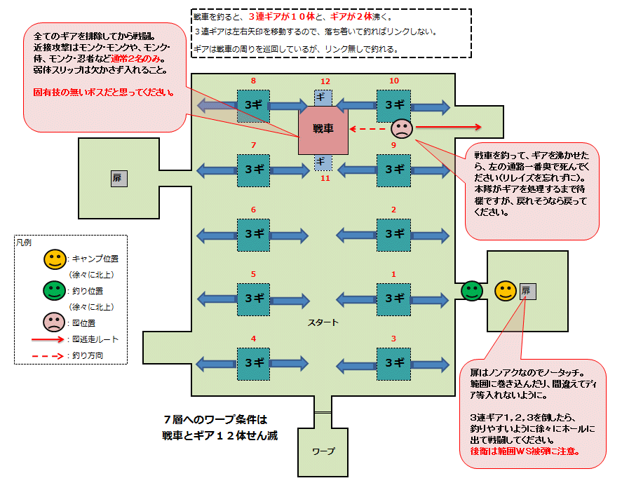 開幕、ナイトがボスを釣って図のポイント付近へ連れてきます。
