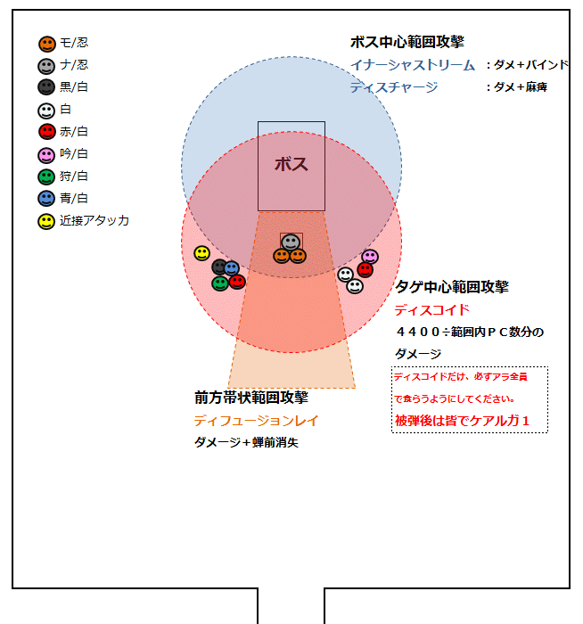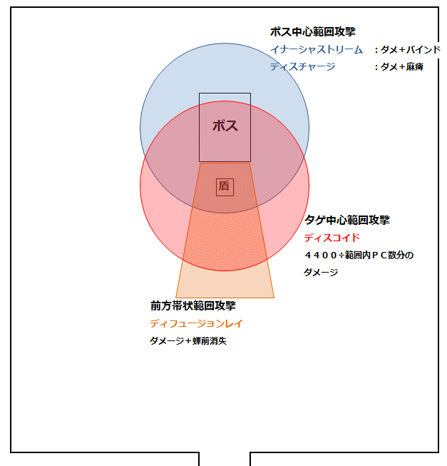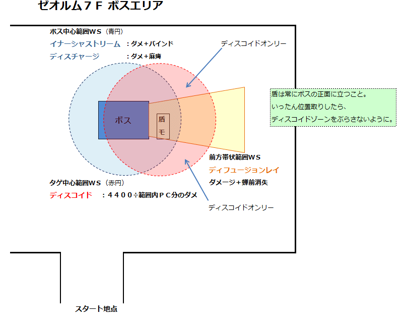 盾役がボスから離れるほど、ディスコイドオンリーは拡大します。