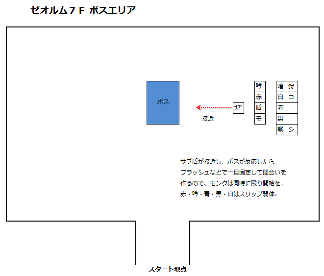 ボスに接近して殴り、赤・黒・青・白・吟は弱体&スリップを