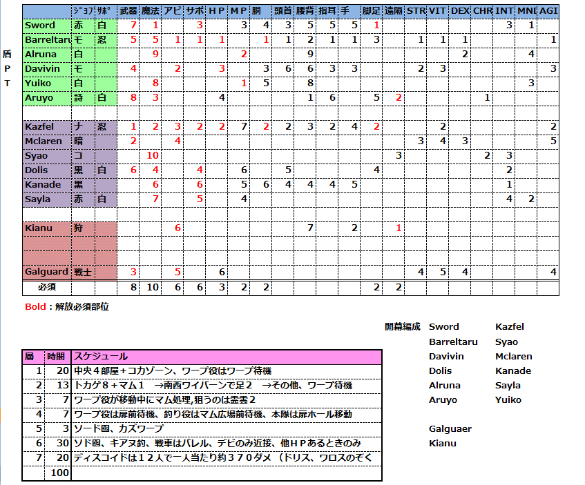 | 参加 | 氏名 | ジョブ | サポ | 備考 |