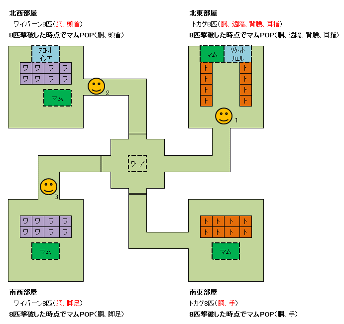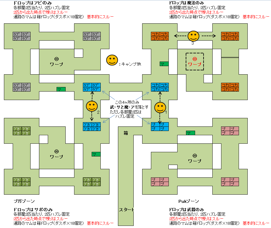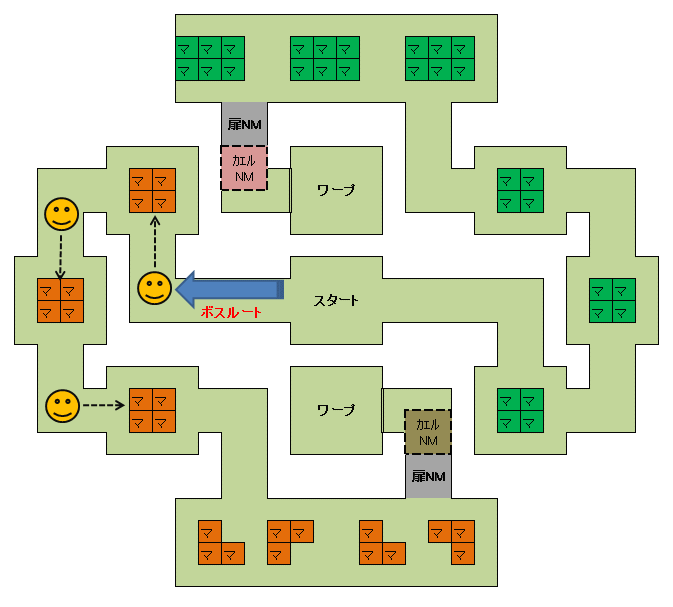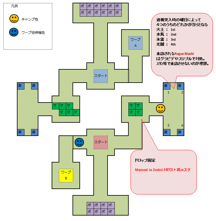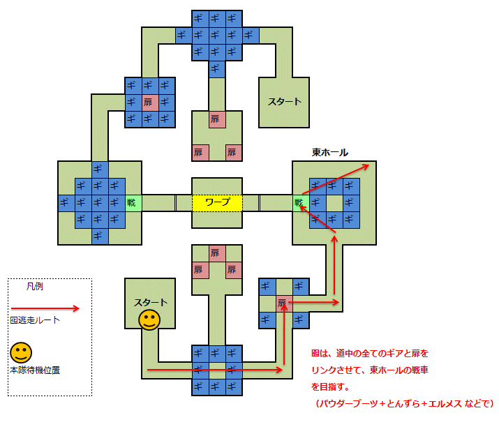 ・ワープ後、すぐに扉広間へ移動し、あたりの扉のみ処理